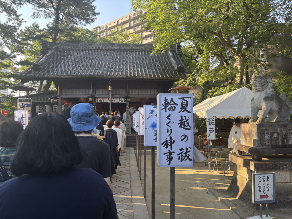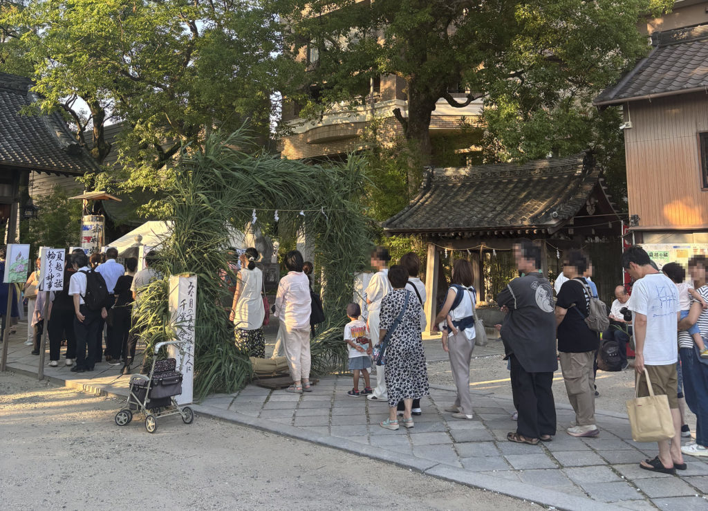 6月30日に菅生神社にて南康生の役員様、神社係様、関係者様ご協力のもと、夏越の大祓・輪くぐりの神事が行われました。参道に葦(よし)を編んだ大きな茅の輪が造られ、天と地、自身を祓い、茅の輪をくぐることによって、穢れを祓い身を清めます。近隣の住民に限らず、バスや車で、沢山の参拝者様が遠方から訪れておりました。